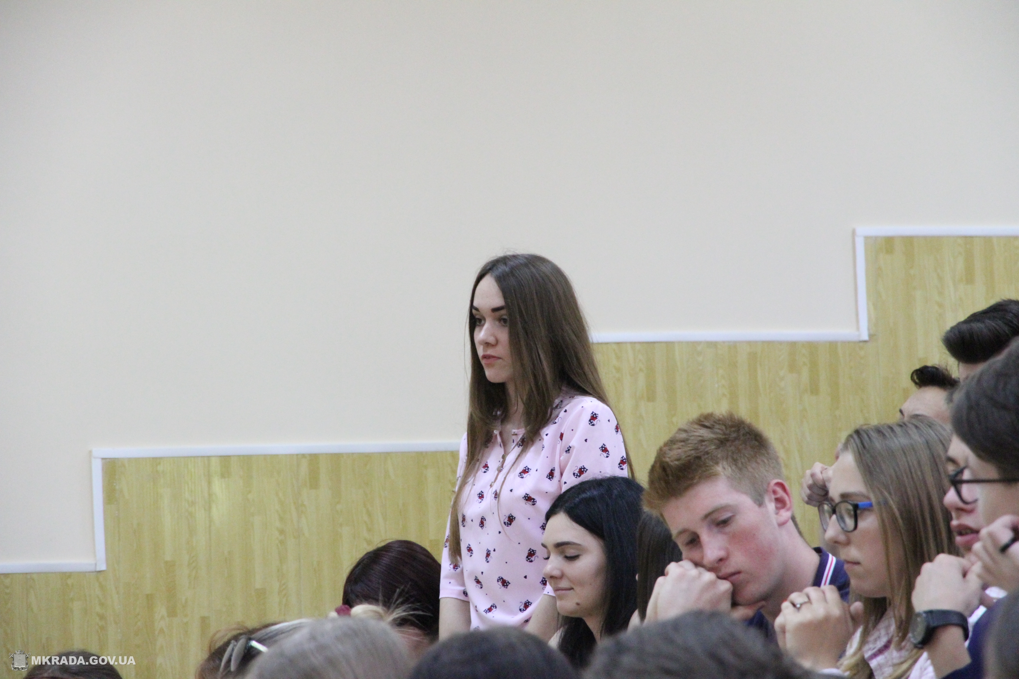 Після цього іноземна делегація з очільником міста завітала до Миколаївського національного університету імені В.О. Сухомлинського. Молодь спілкувалася з радником з економічних питань консульства Румунії в Одесі Валентином Мамантом та консулом-радником Генерального Консульства Республіки Болгарія в Одесі Тодором Вітєвим. В рамках зустрічі студенти мали можливість поставити дипломатам важливі для себе запитання та дізналися про особливості освіти в країнах Європейського Союзу.